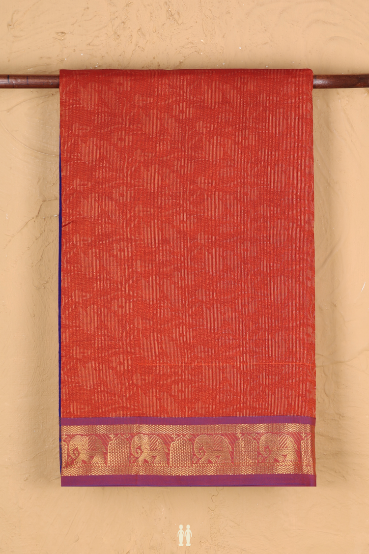 Silk Cotton Saree In Brick Red With Allover Design