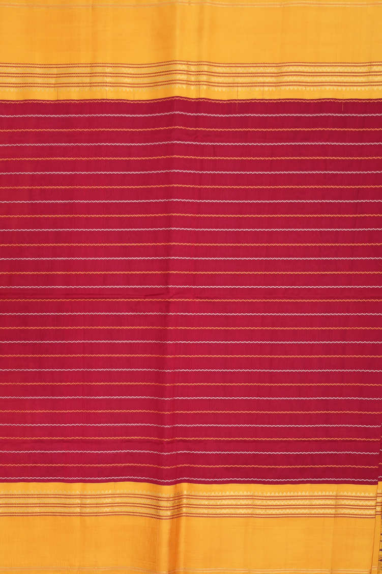 Silk Cotton Saree In Crimson Red With Stripes Design