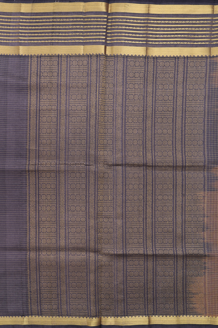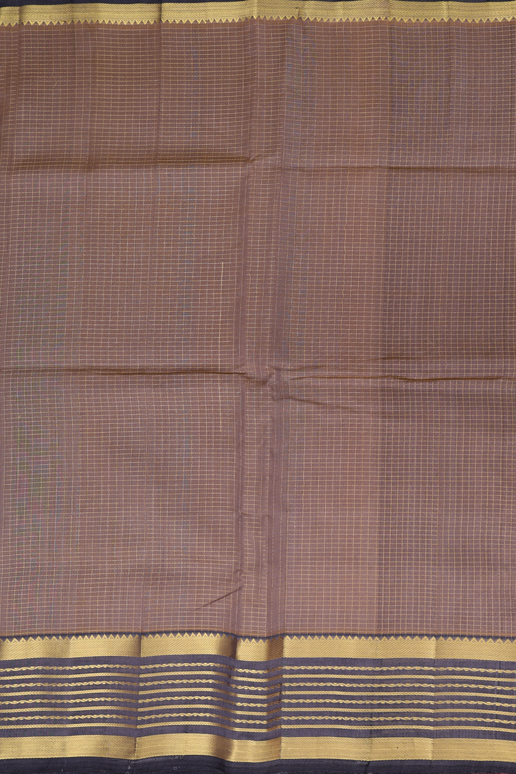 Silk Cotton Saree In Cocoa Brown With Checks Design