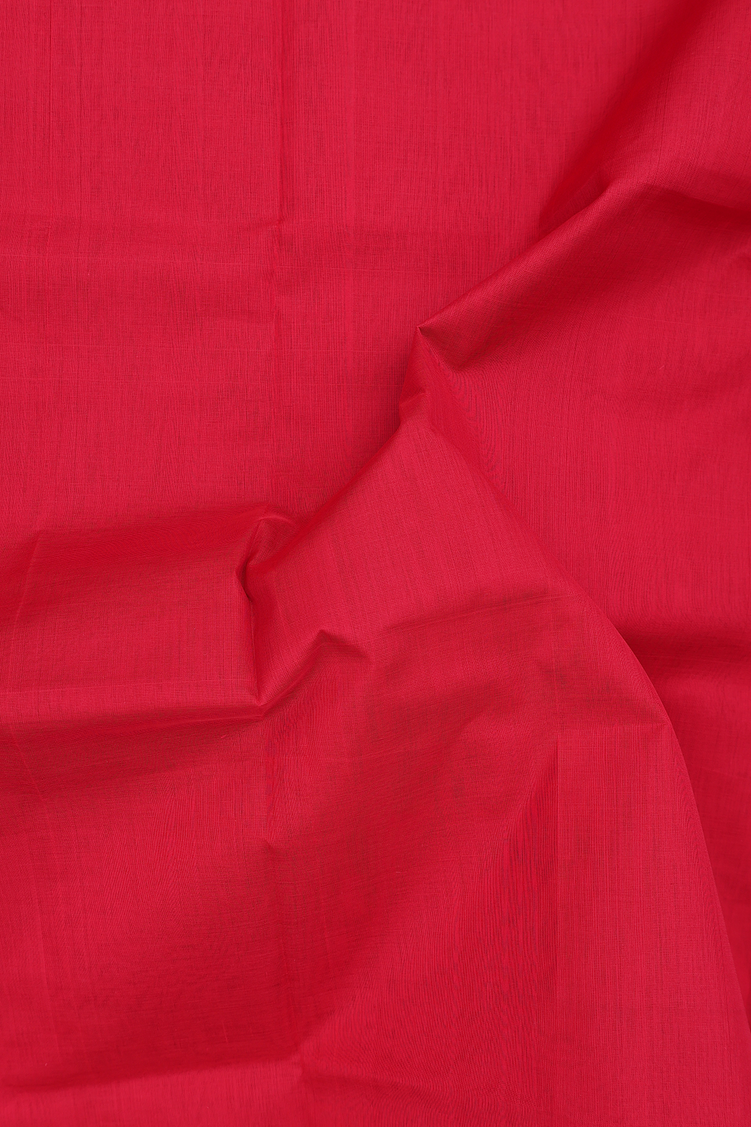 Silk Cotton Saree In Crimson Red With Contrast Border