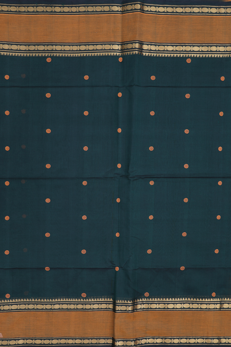 Silk Cotton Saree In Bottle Green With Threadwork Buttas