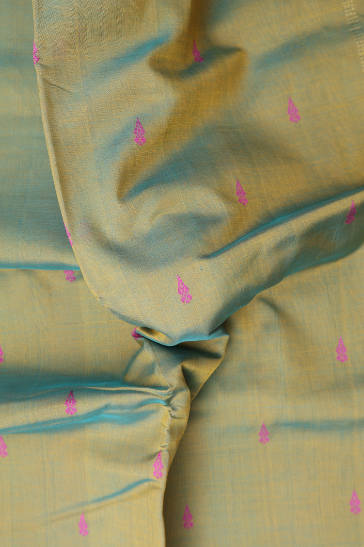Silk Cotton Saree In Dual Tone With Threadwork Buttas