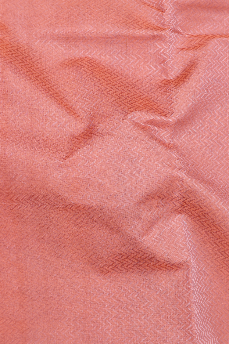 Silk Cotton Saree In Dusty Orange With Chevron Design
