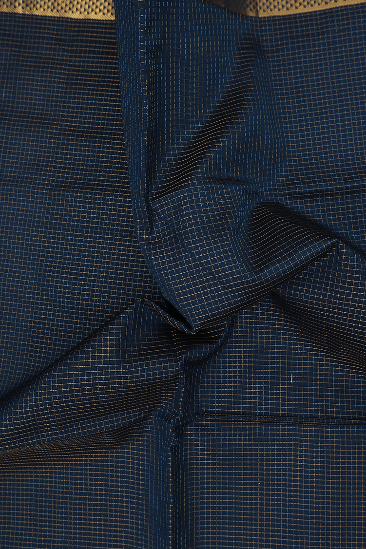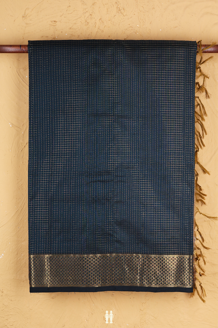 Silk Cotton Saree In Midnight Green With Checks Design