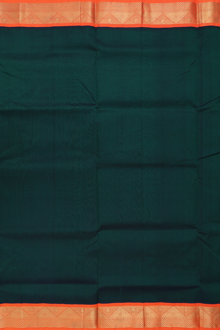 Silk Cotton Saree In Plain Dark Green With Contrast Border
