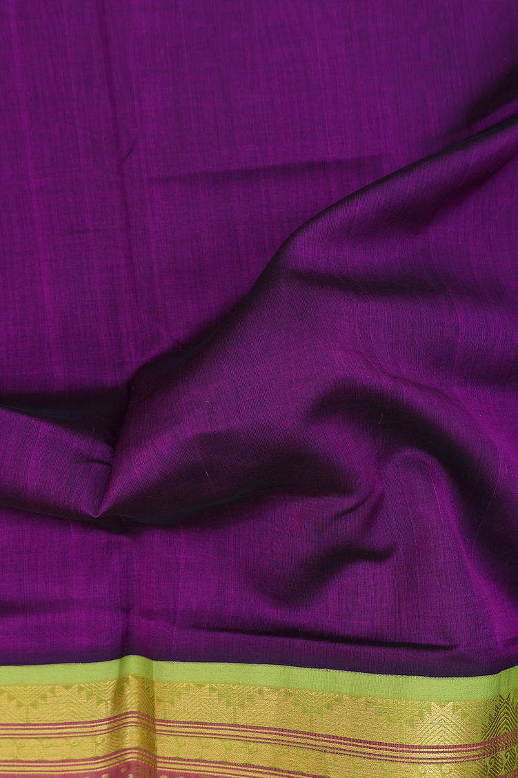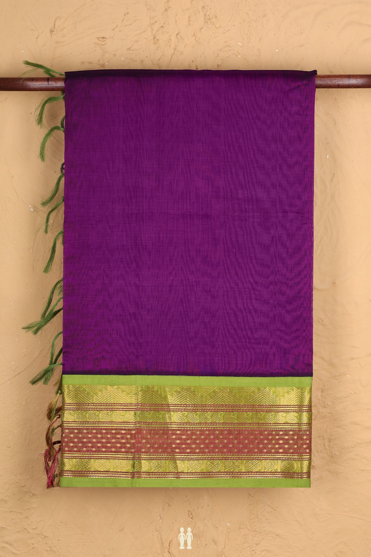 Silk Cotton Saree In Plum Purple With Contrast Border