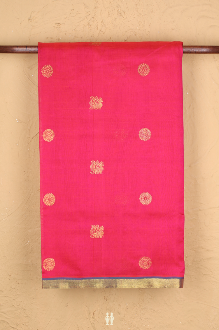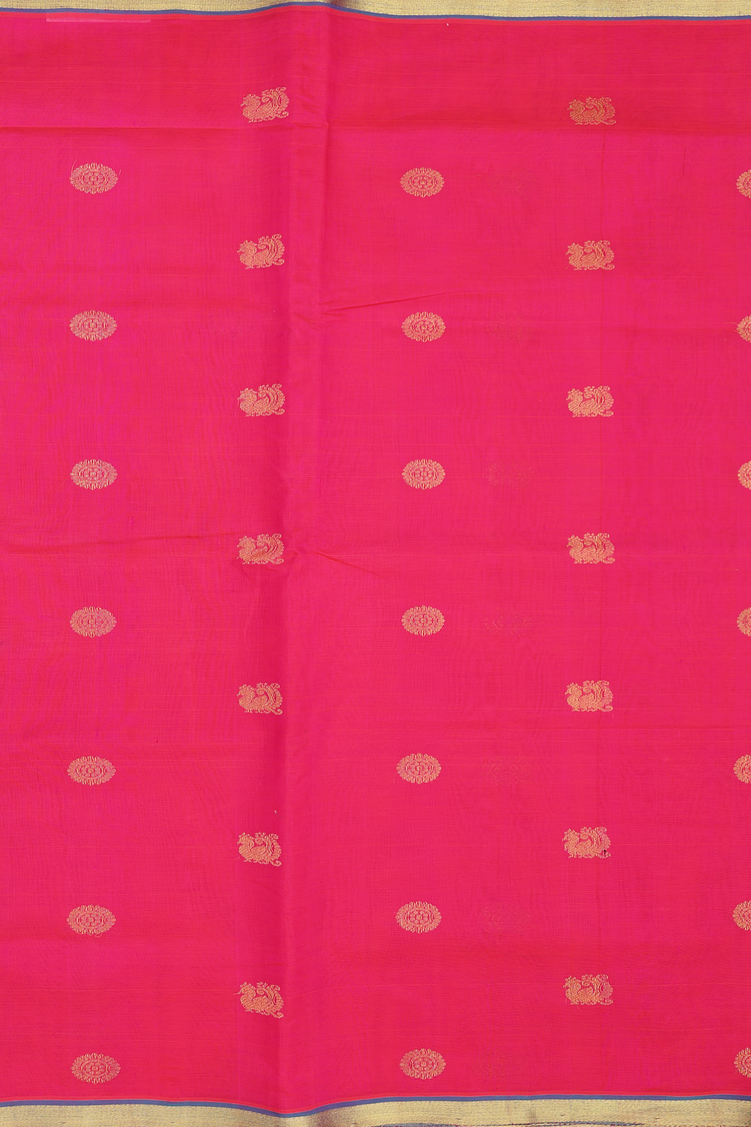 Silk Cotton Saree In Rani Pink With Peacock Buttas