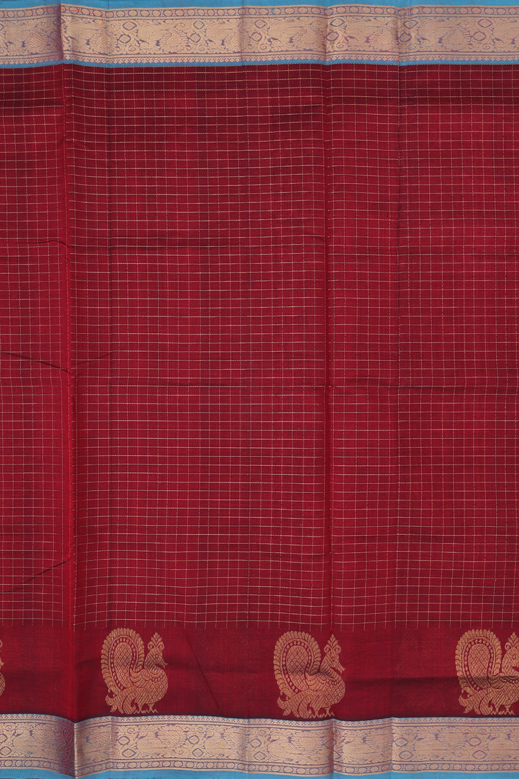 Silk Cotton Saree In Rust Red With Checks Design