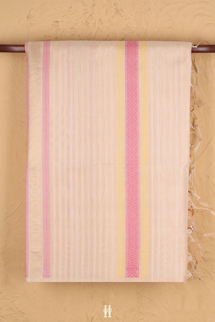 Soft Silk Saree In Biscuit Color With Stripes Design