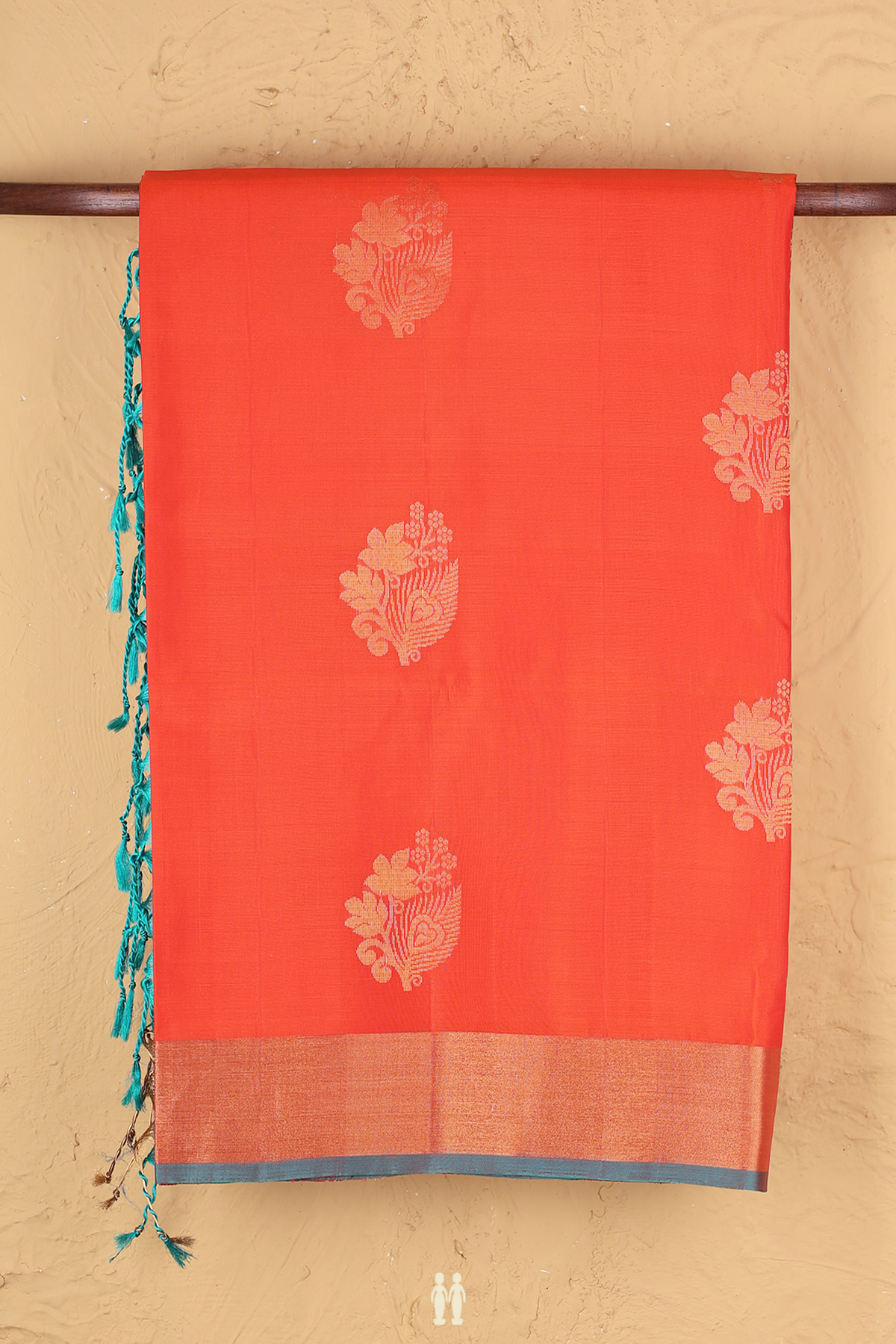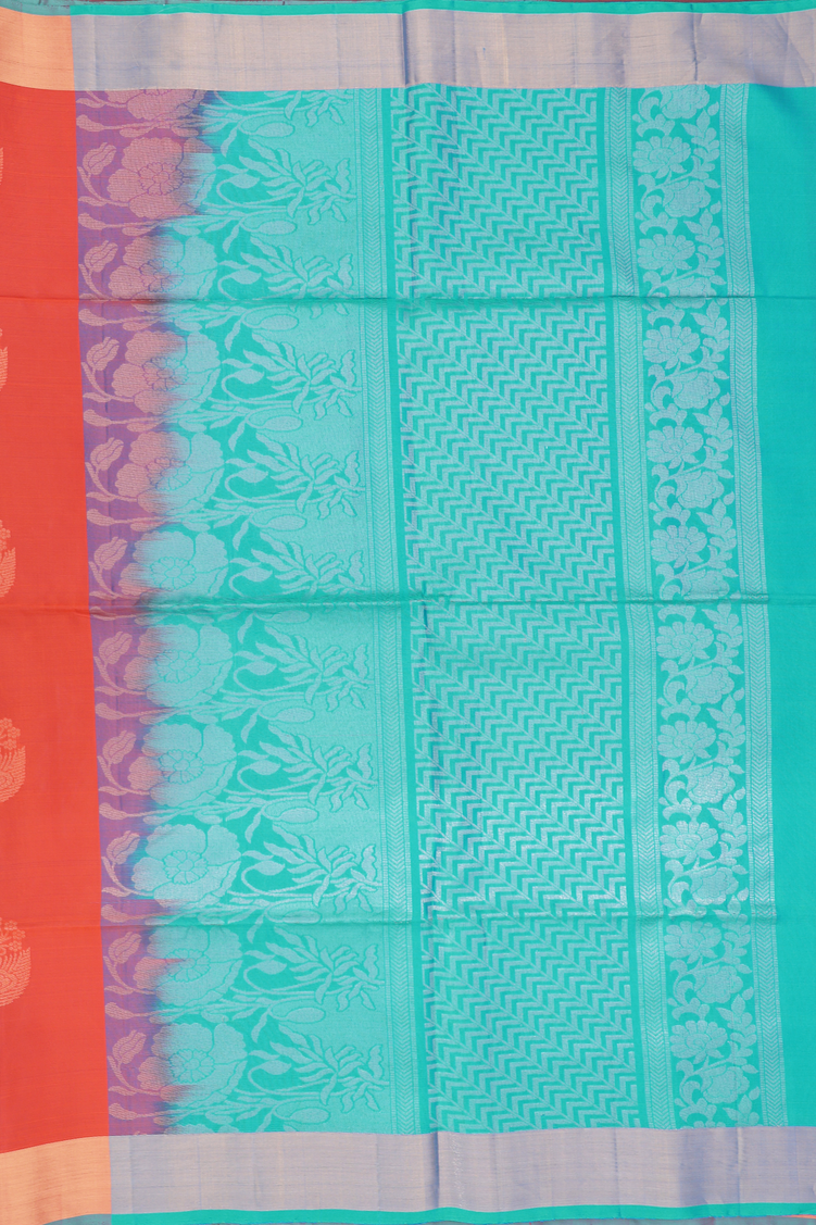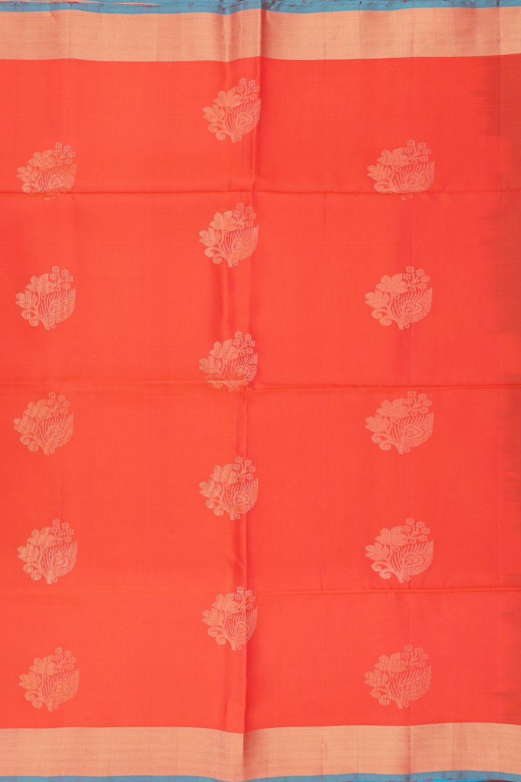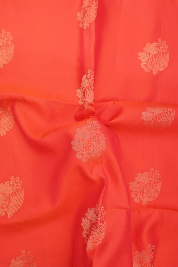 Soft Silk Saree In Bright Orange With Floral Motifs