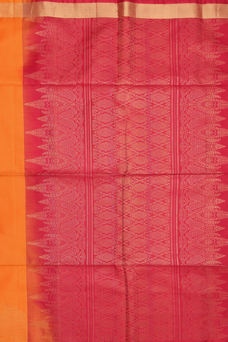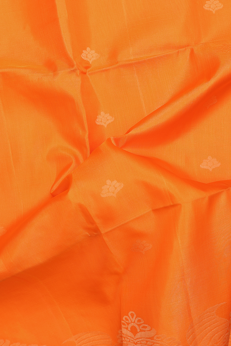Soft Silk Saree In Bright Orange With Zari Buttas