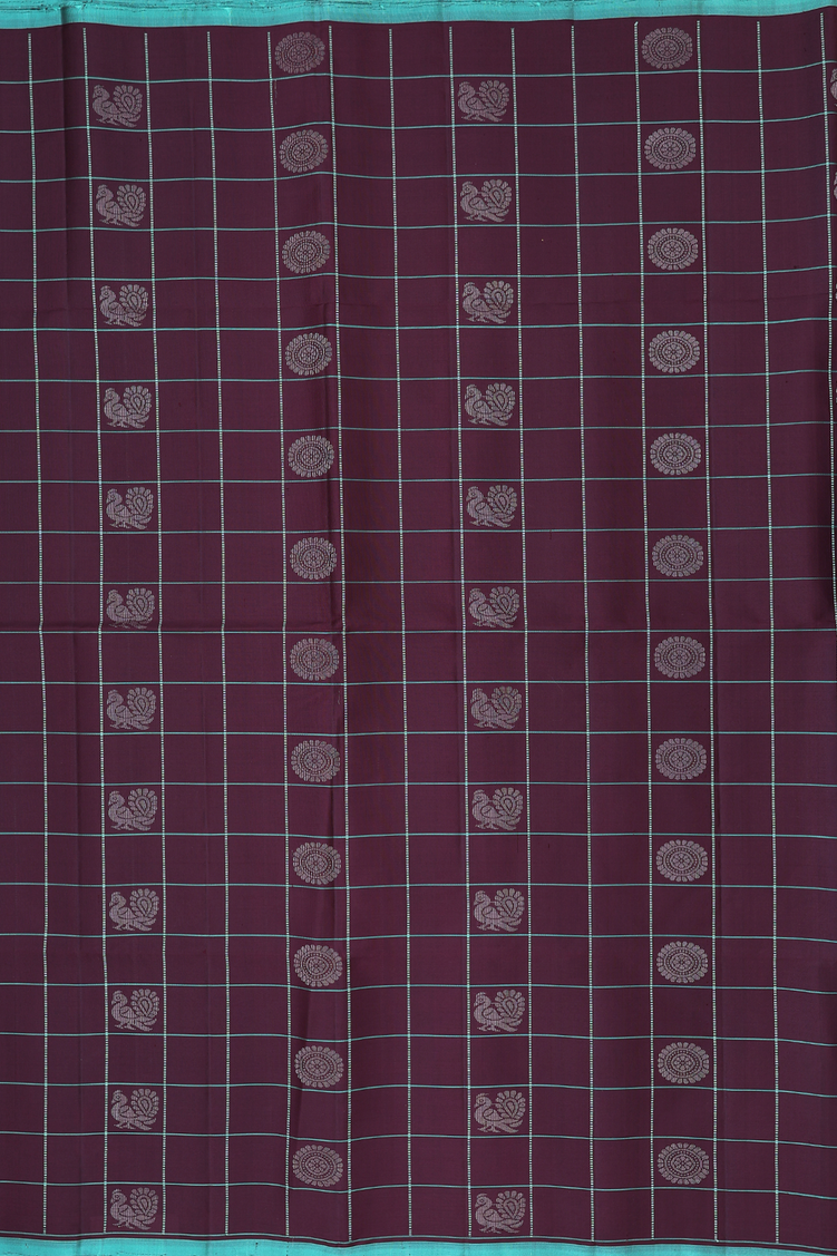 Soft Silk Saree In Dark Oak Brown With Checks Design