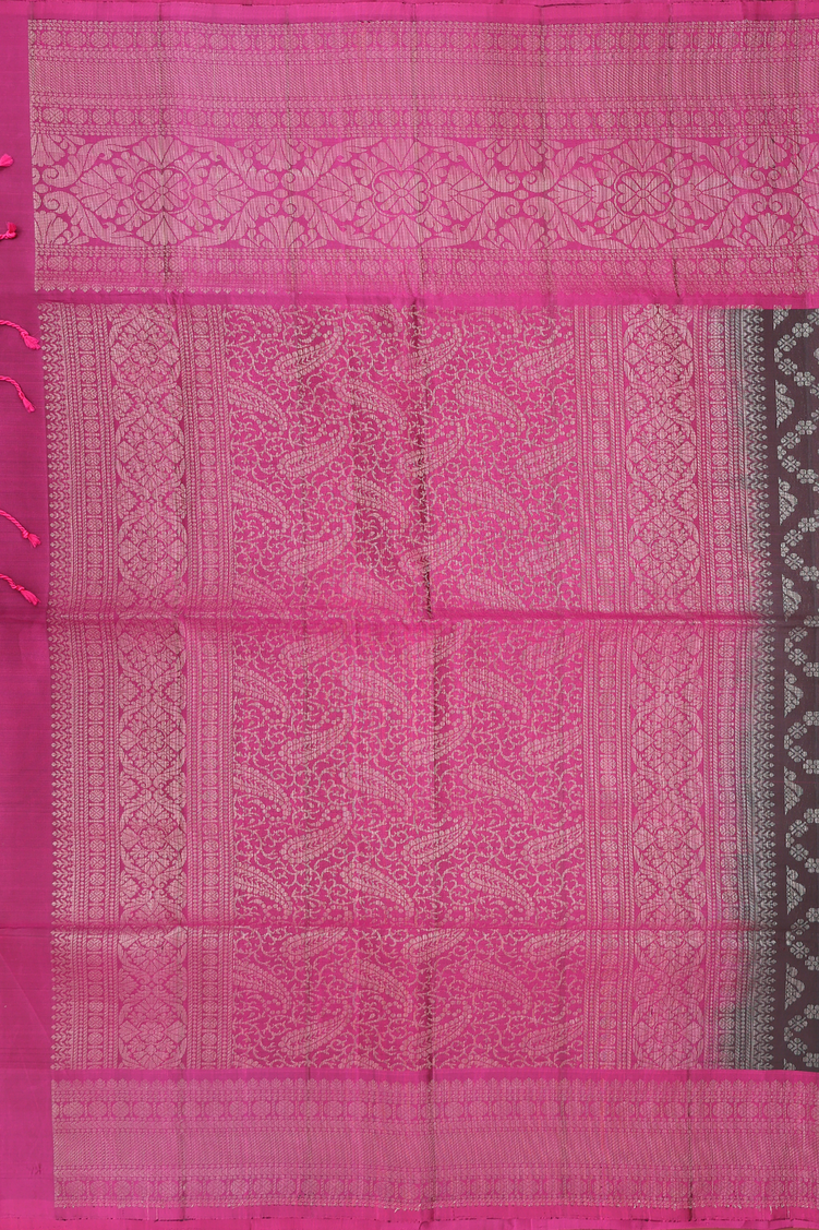 Experience understated luxury with this soft silk saree featuring a sophisticated dark oak brown base enhanced by an intricate diamond motif. The striking berry purple contrast border adds a contemporary edge to this classic design, creating visual depth and dimension. Crafted from premium silk, the fabric drapes beautifully while maintaining its elegant structure. Ideal for weddings, festivals, and formal occasions, this saree seamlessly blends traditional artistry with modern styling sensibilities. The complementary color palette makes it versatile enough to pair with various jewelry styles and accessories. A statement piece that celebrates refined taste and authentic Indian textile heritage.