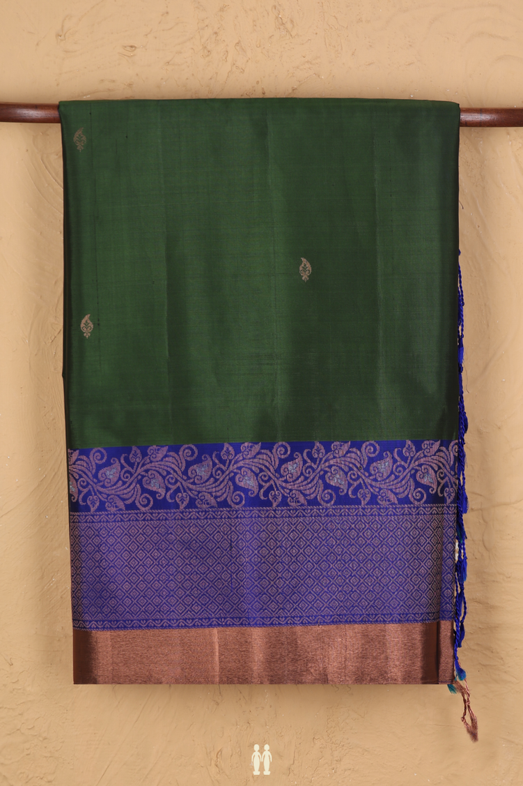 Soft Silk Saree In Forest Green With Paisley Buttas