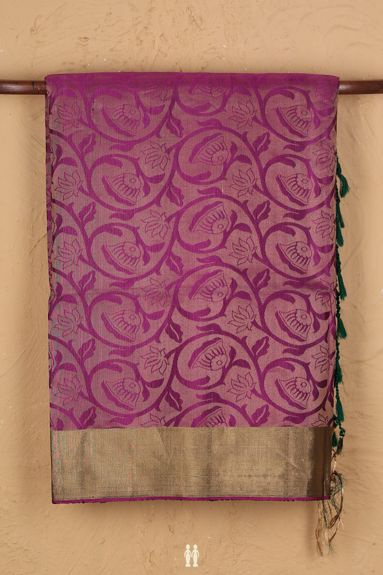 Drape yourself in elegance with this exquisite soft silk saree in rich grape purple. Adorned with intricate floral brocade detailing, this timeless piece combines traditional craftsmanship with luxurious comfort. The fluid silk fabric flows gracefully, making it perfect for weddings, festivals, and special occasions. The delicate floral patterns add sophistication and charm to your ethnic wardrobe. A versatile choice that celebrates classic Indian beauty with contemporary appeal.