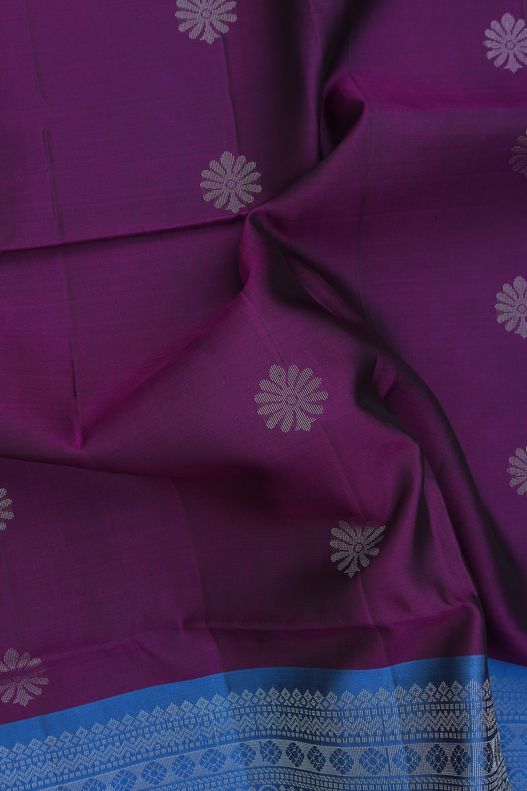 Drape yourself in timeless elegance with this exquisite soft silk saree in rich grape purple. The luxurious fabric flows gracefully, offering unparalleled comfort and a refined sheen that catches light beautifully. Adorned with delicate floral motifs, this saree seamlessly blends traditional craftsmanship with contemporary aesthetics. Perfect for weddings, celebrations, or special occasions, it's a versatile piece that elevates your ethnic wardrobe.Â