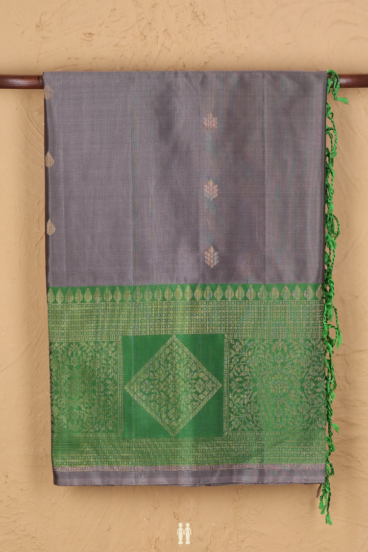 Soft Silk Saree In Grey With Zari Buttas