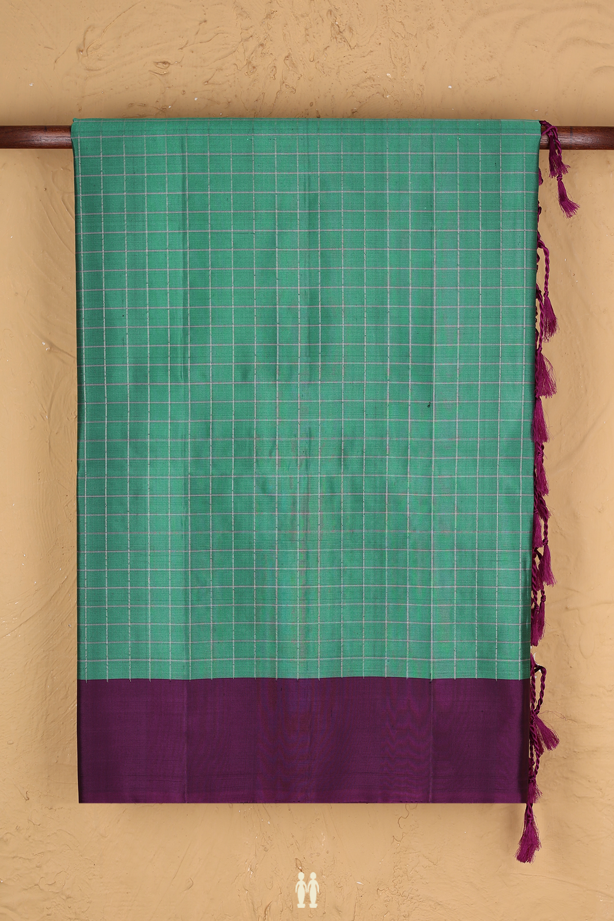 Experience timeless elegance with this soft silk saree in a refreshing jade green shade, featuring a classic checks design. Its smooth texture drapes effortlessly, enhancing your grace for any occasion. The subtle interplay of color and pattern offers a sophisticated charm that complements your refined style. Ideal for celebrations or formal events, this saree blends tradition with contemporary appeal.