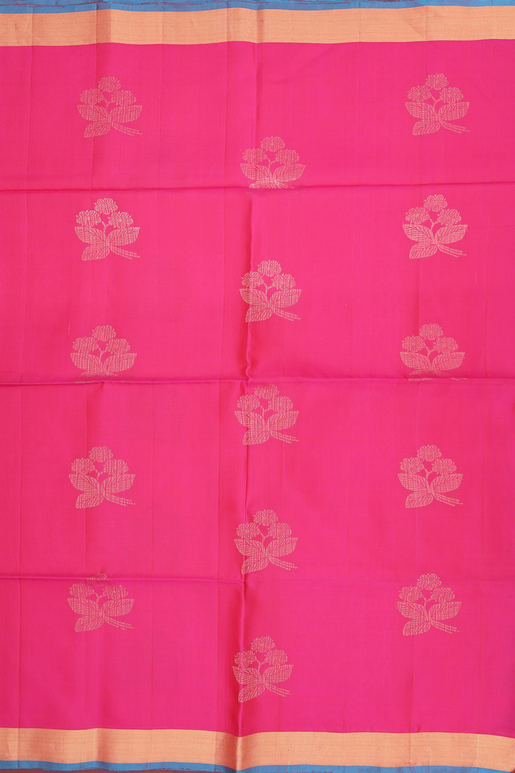 Soft Silk Saree In Rani Pink With Floral Motifs