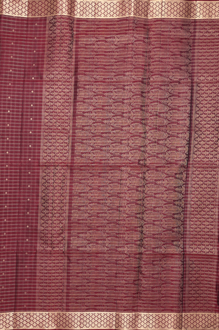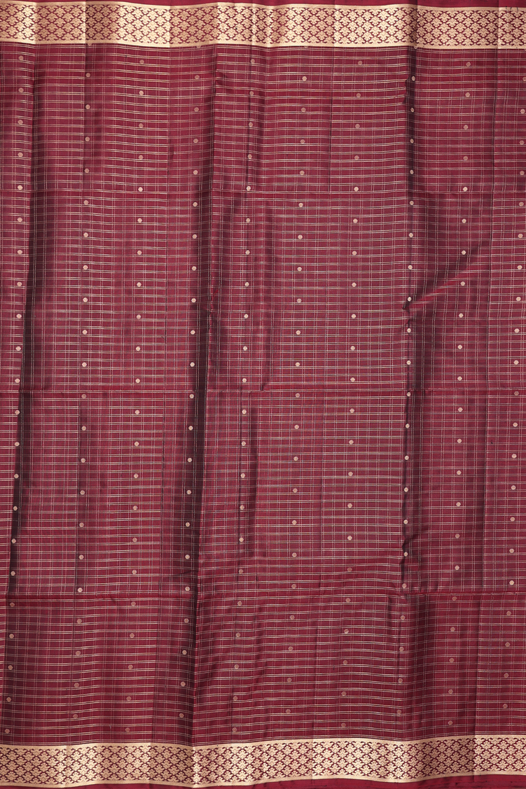 This maroon soft silk saree features an elegant checks design, blending traditional charm with contemporary style. Its lightweight silk fabric offers a smooth, comfortable drape, making it perfect for both formal occasions and festive events. The subtle checks pattern adds a refined texture, enhancing its sophisticated appeal. Elevate your wardrobe with this timeless piece that combines grace and comfort effortlessly.
