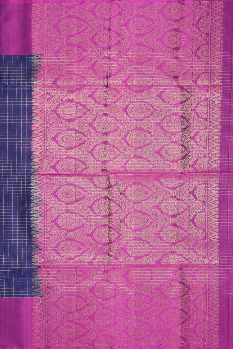 Soft Silk Saree In Navy Blue With Checks Design