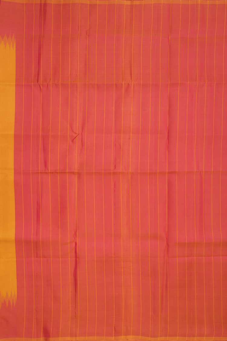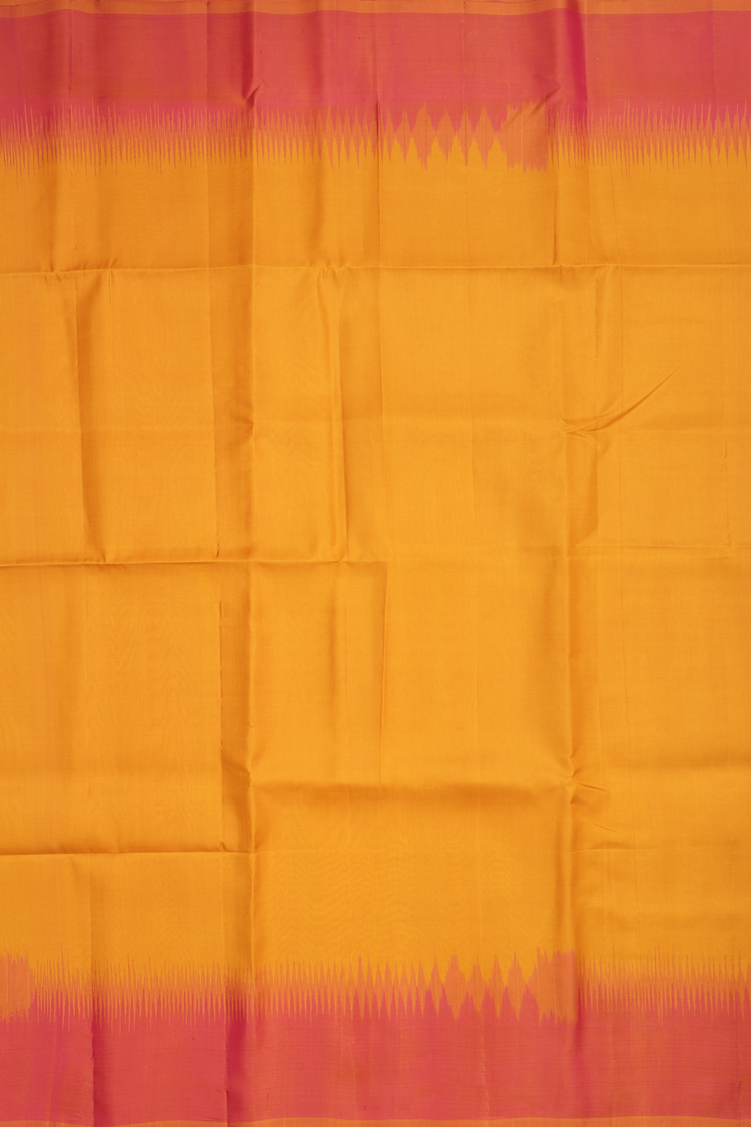 This soft silk saree in a rich ochre orange shade features a striking contrast border that enhances its elegant appeal. Its smooth texture ensures a graceful drape, making it perfect for both formal occasions and festive celebrations. Experience the blend of comfort and timeless style with this refined saree that adds a touch of sophistication to your wardrobe.