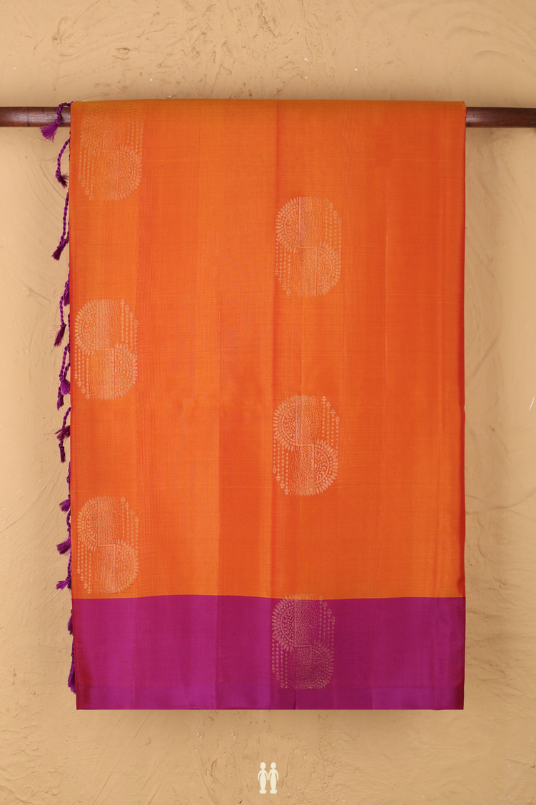 Soft Silk Saree In Orange With Zari Design
