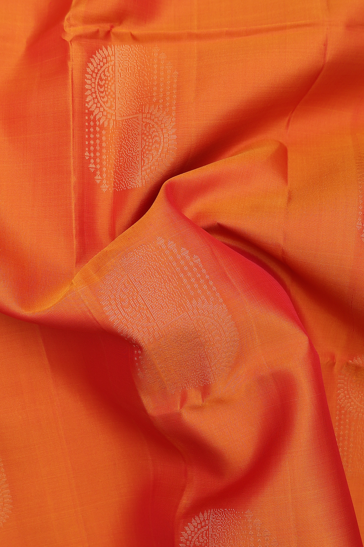 Elevate your elegance with this soft silk saree in a vibrant orange hue, adorned with intricate zari motifs. The luxurious silk fabric offers a smooth, graceful drape, while the delicate zari work adds a timeless shimmer, perfect for festive occasions and celebrations. This saree combines traditional craftsmanship with refined style, making it an exquisite choice for those who appreciate subtle sophistication.