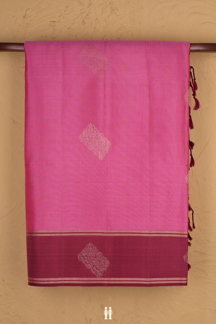 Soft Silk Saree In Orchid Pink With Zari Motifs