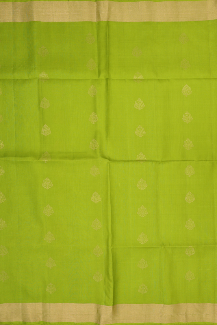 Soft Silk Saree In Parrot Green With Floral Buttas
