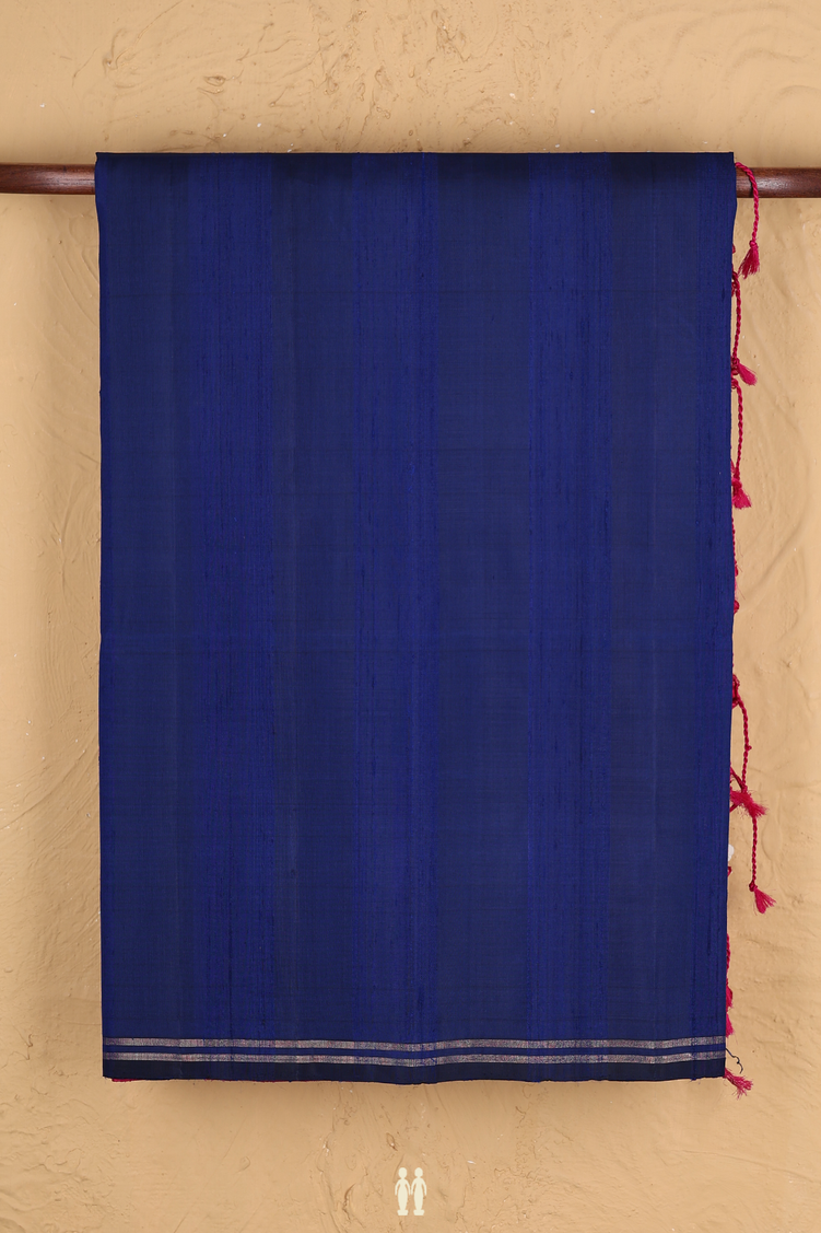 Soft Silk Saree In Plain Oxford Blue With Contrast Pallu
