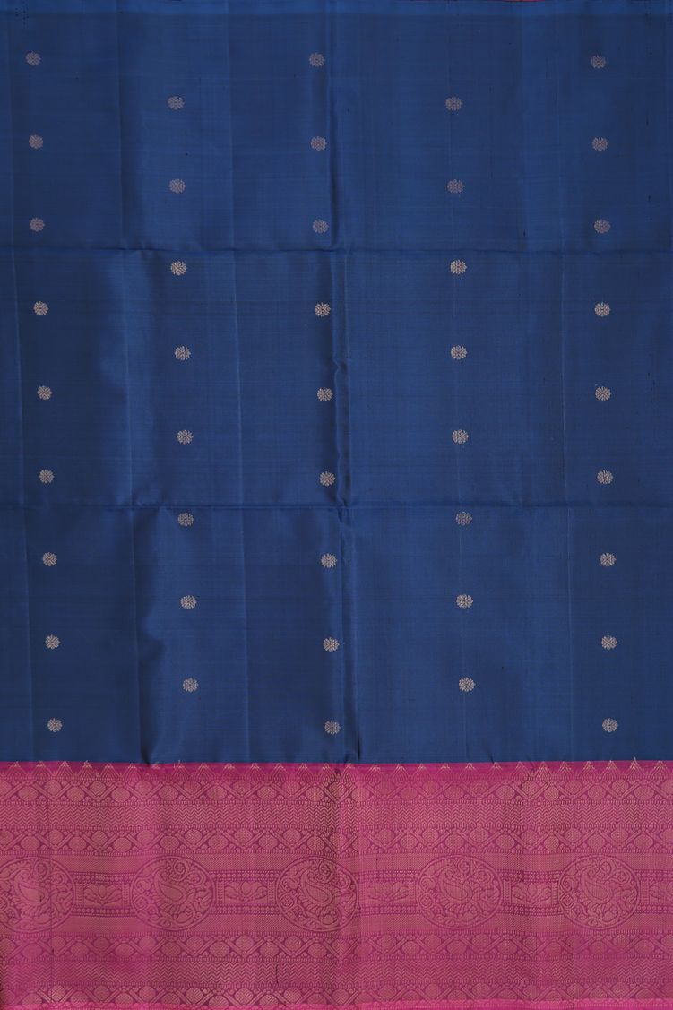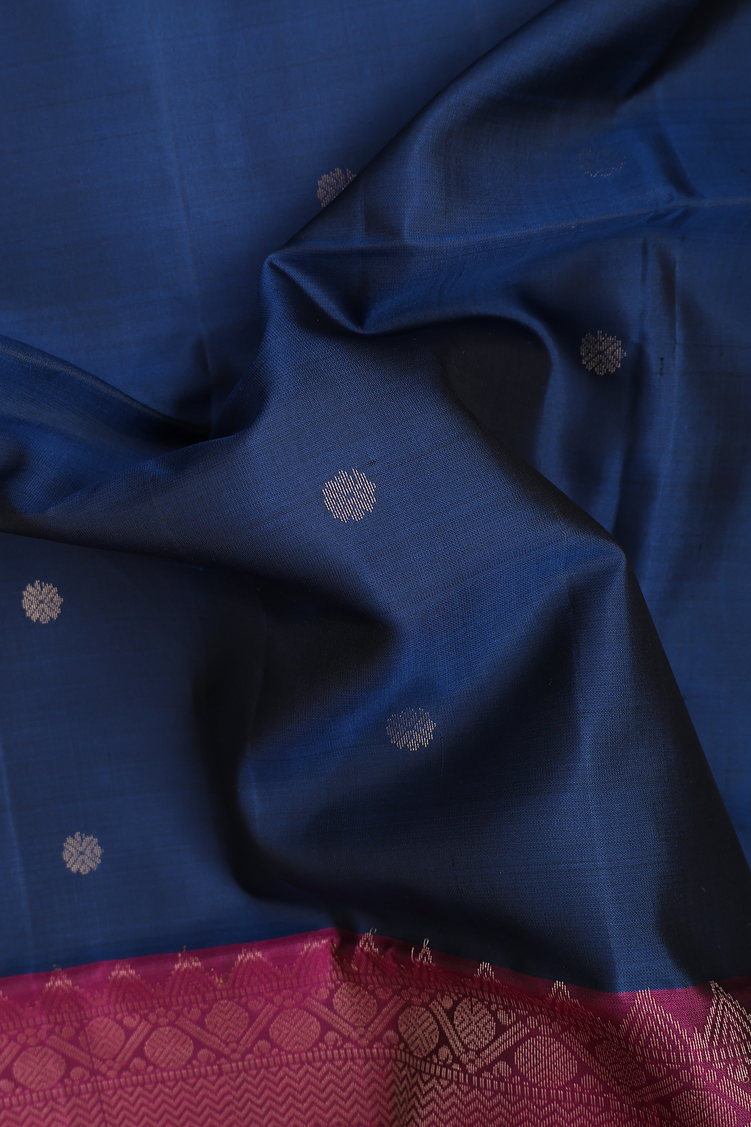 Soft Silk Saree In Prussian Blue With Floral Buttas