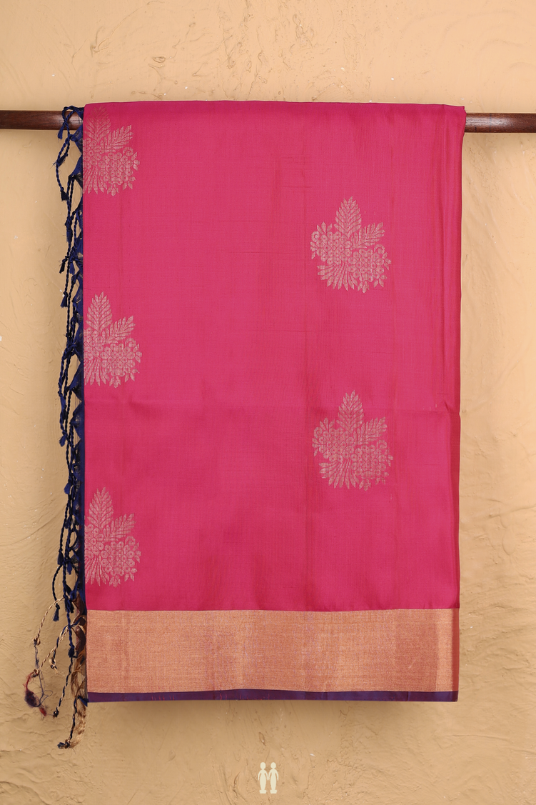 Drape yourself in timeless elegance with this exquisite soft silk saree in rich magenta. Adorned with delicate floral motifs that dance across the fabric, this piece seamlessly blends traditional craftsmanship with refined sophistication. The luxuriously smooth silk drapes beautifully, creating graceful silhouettes for any occasion. Perfect for celebrations, weddings, or formal gatherings, this saree is a testament to classic Indian artistry and enduring style.