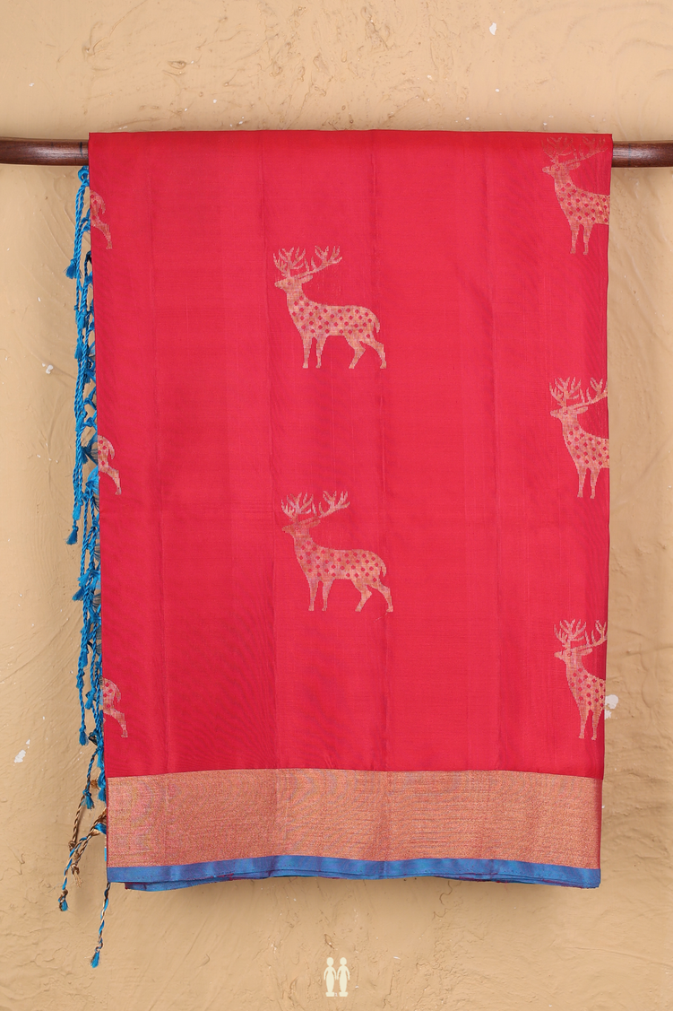 Soft Silk Saree In Red With Deer Motifs