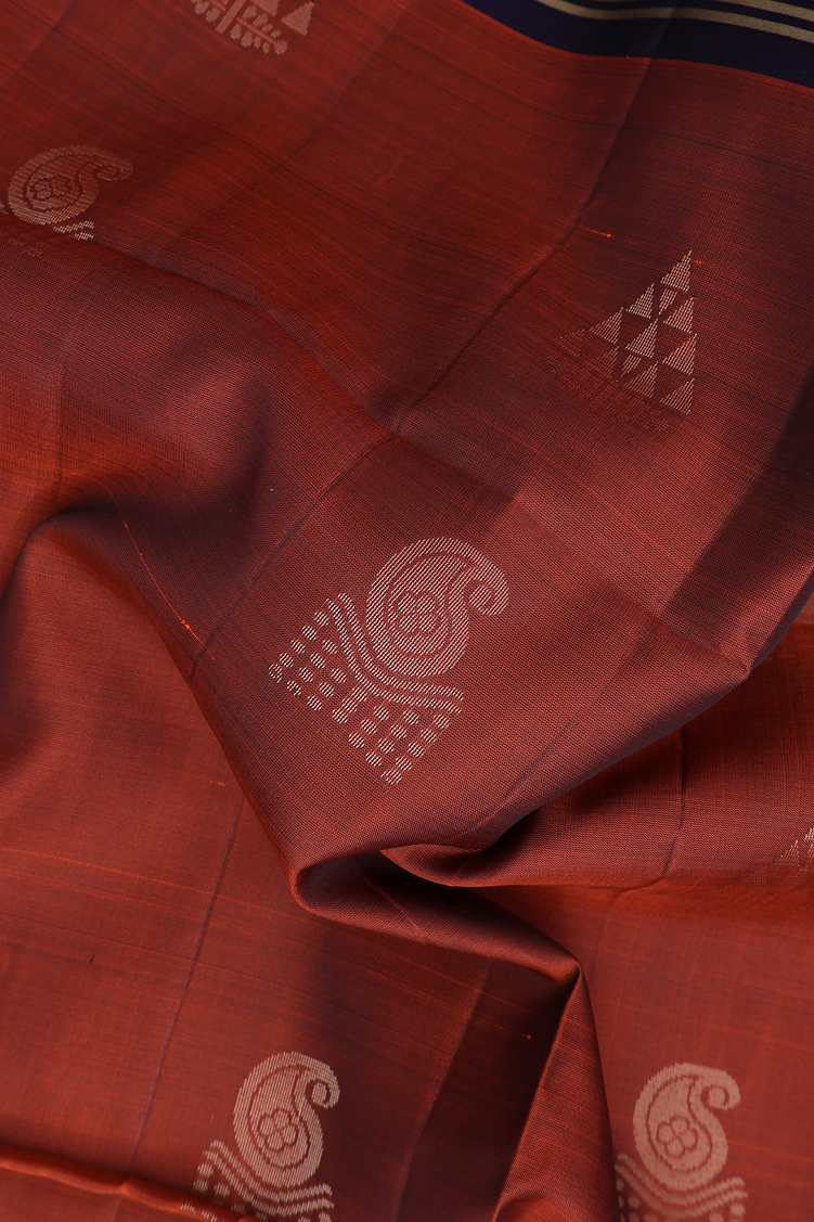 Soft Silk Saree In Rust Red With Paisley Motifs