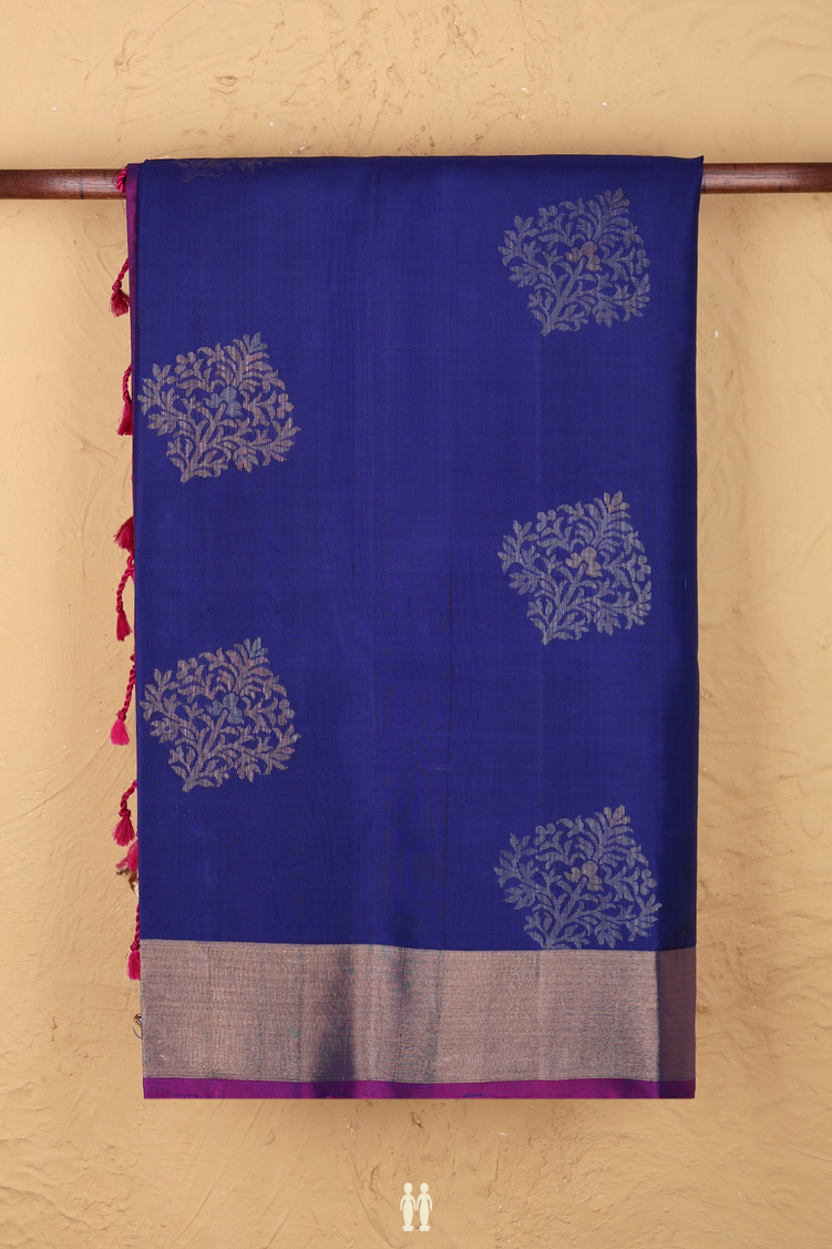 Soft Silk Saree In Royal Blue With Floral Motifs