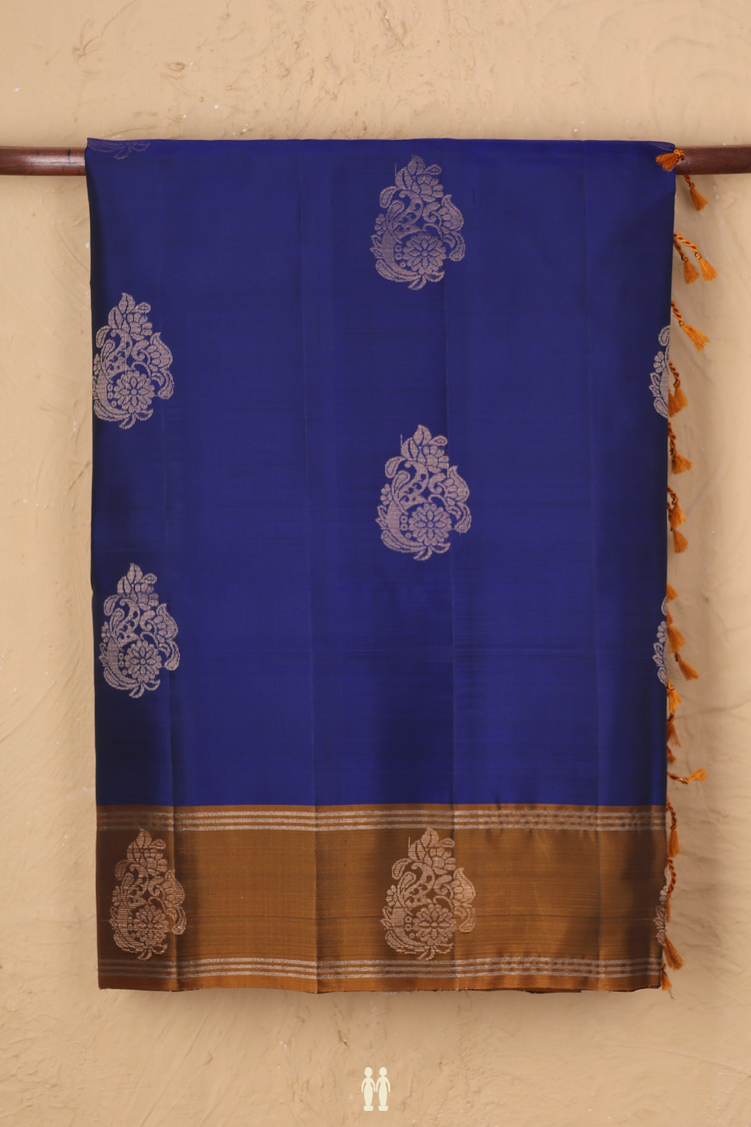 Soft Silk Saree In Royal Blue With Floral Motifs