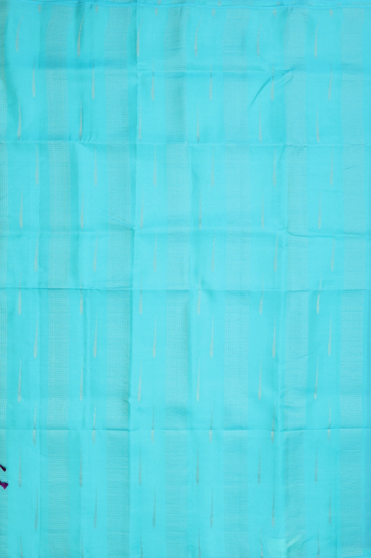 Soft Silk Saree In Turquoise Blue With Stripes Design