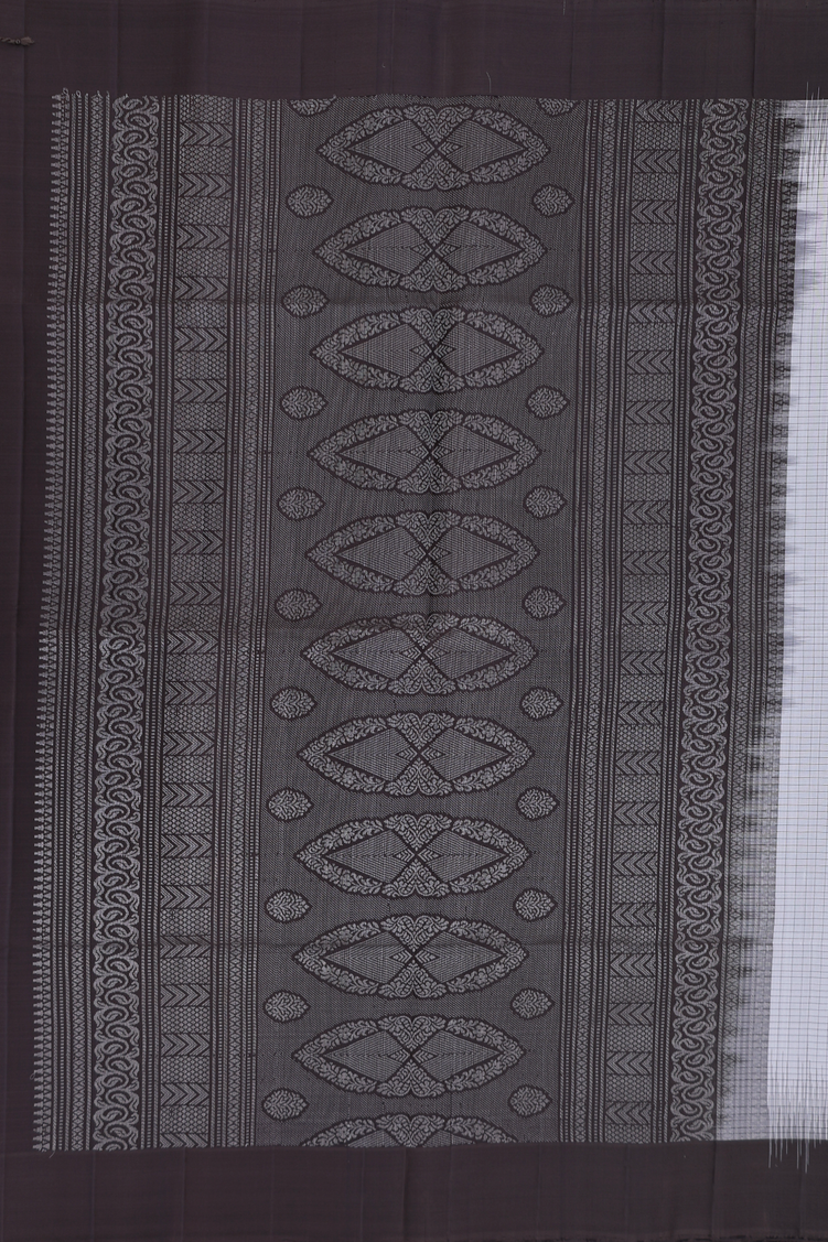 Drape yourself in timeless elegance with this exquisite soft silk saree, featuring a refined white base adorned with subtle checks with contrast oxford brown border. The luxurious fabric offers a gentle drape that flatters every silhouette, while the understated geometric pattern adds contemporary sophistication to traditional styling. Perfect for both festive occasions and refined everyday wear, this versatile piece seamlessly transitions from celebrations to intimate gatherings. The soft silk ensures comfort throughout the day, making it an essential addition to any discerning wardrobe.