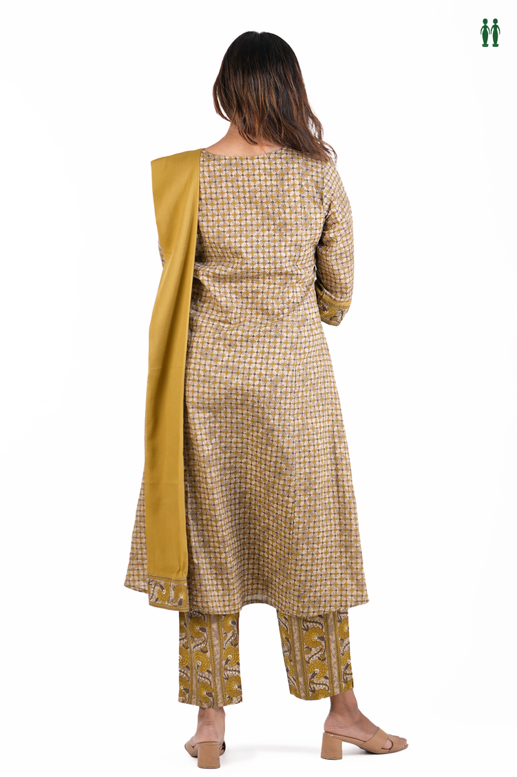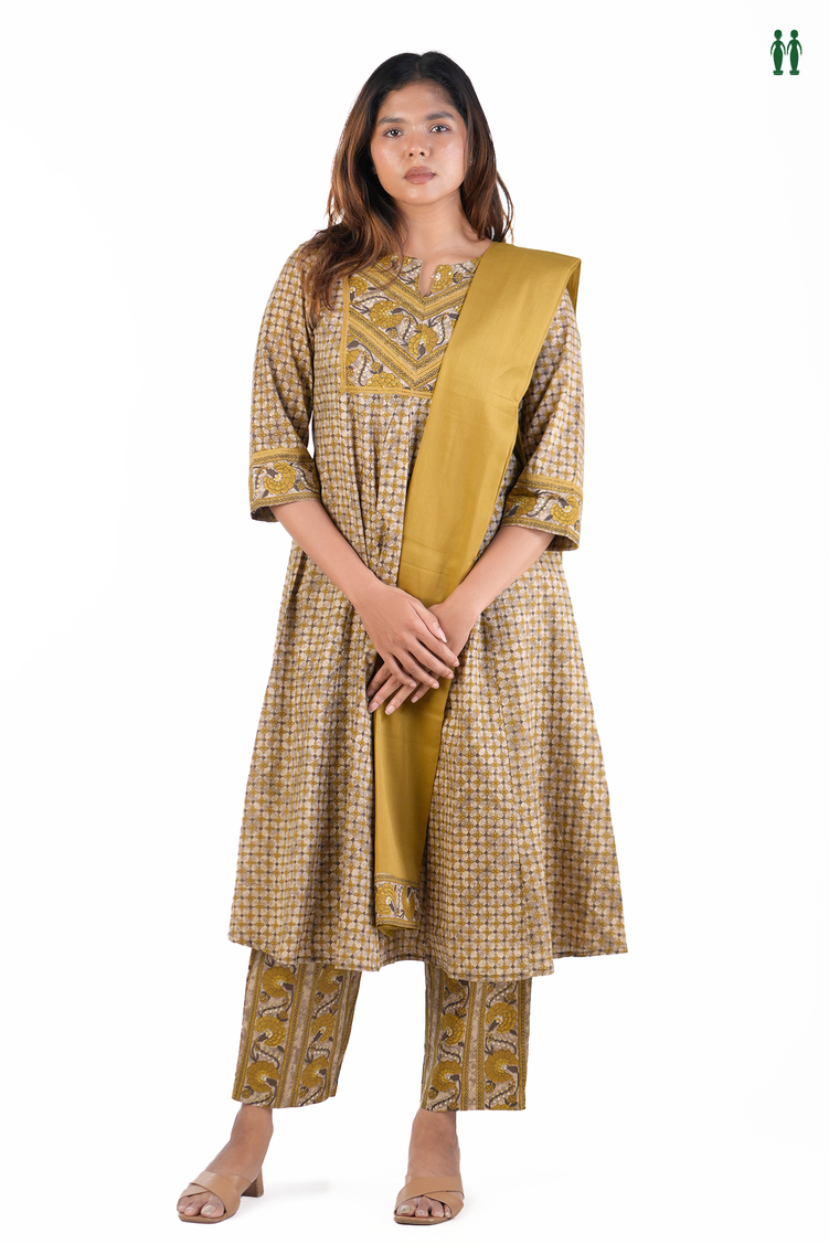 Elevate your everyday wardrobe with this refined brown cotton salwar set, featuring an exquisite split neck adorned with delicate floral embroidery. Crafted from breathable, premium cotton, this ensemble offers both comfort and timeless elegance. The thoughtfully designed neckline adds a contemporary touch while maintaining traditional charm. Perfect for casual gatherings.