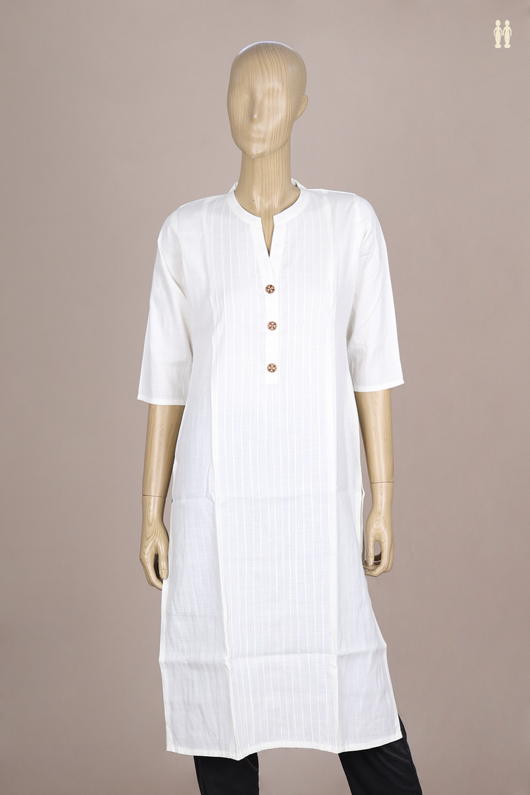 Elevate your wardrobe with this split neck plain white cotton long kurta, crafted for timeless elegance and comfort. Made from breathable cotton, it ensures all-day freshness, while the split neck design adds a refined touch. Its minimalist style makes it versatile for both casual and formal occasions, offering effortless sophistication in every wear.