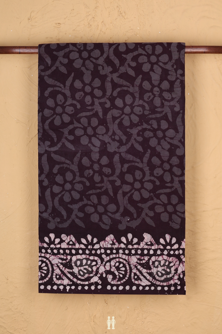 Sungudi Cotton Saree In Dark Oak Brown With Printed Design