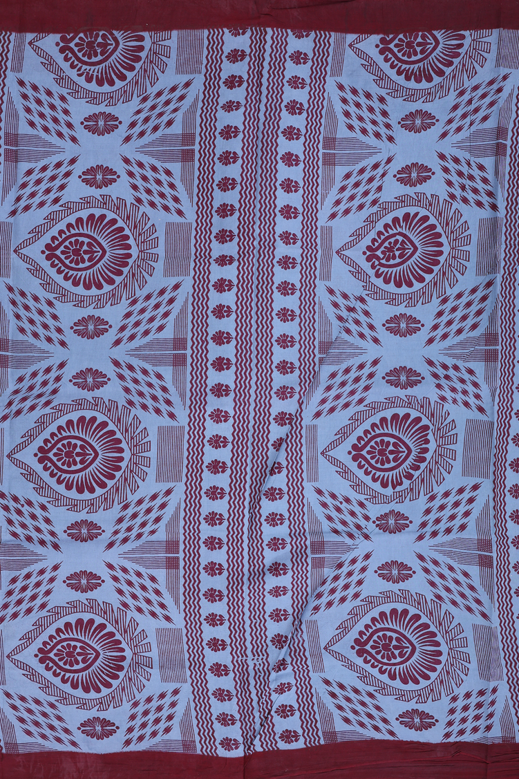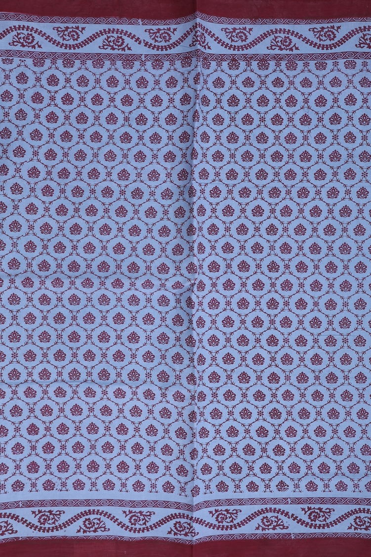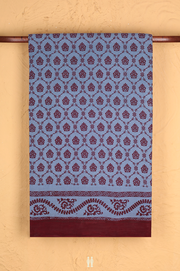 Sungudi Cotton Saree In Dusty Blue With Printed Design