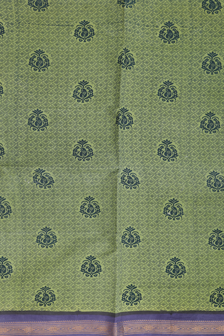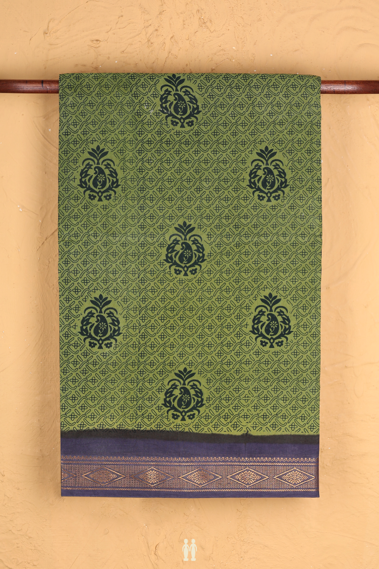 Sungudi Cotton Saree In Dusty Green With Printed Design