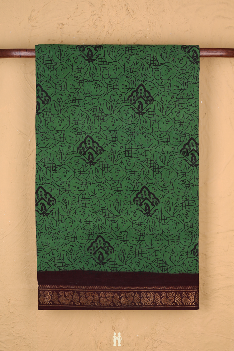 Elevate your wardrobe with this elegant sungudi cotton saree in a rich green hue. Featuring a delicate printed design, it combines traditional craftsmanship with contemporary style for a look that is both timeless and refined. The breathable cotton fabric ensures comfort throughout the day, making it perfect for festive occasions or casual gatherings. This saree effortlessly blends comfort with sophistication, adding a graceful touch to your attire.