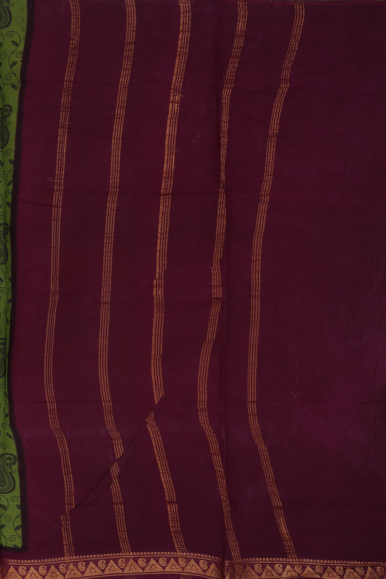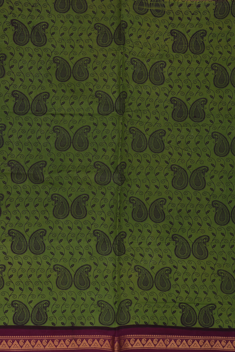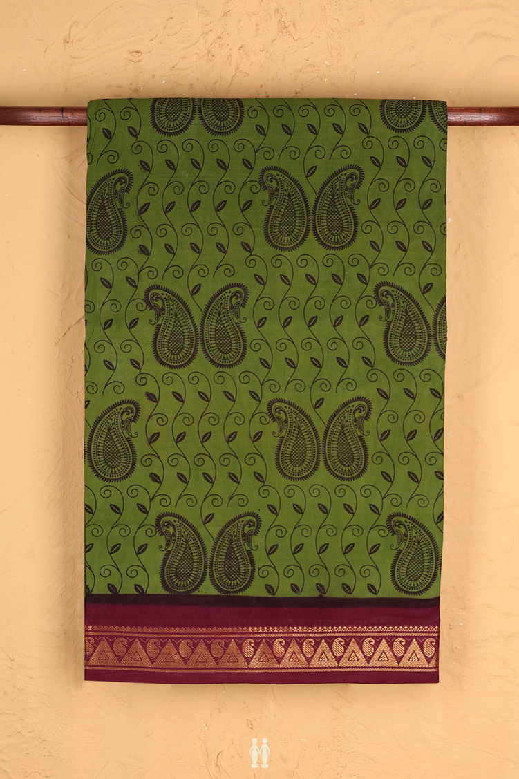 Sungudi Cotton Saree In Olive Green With Paisley Design