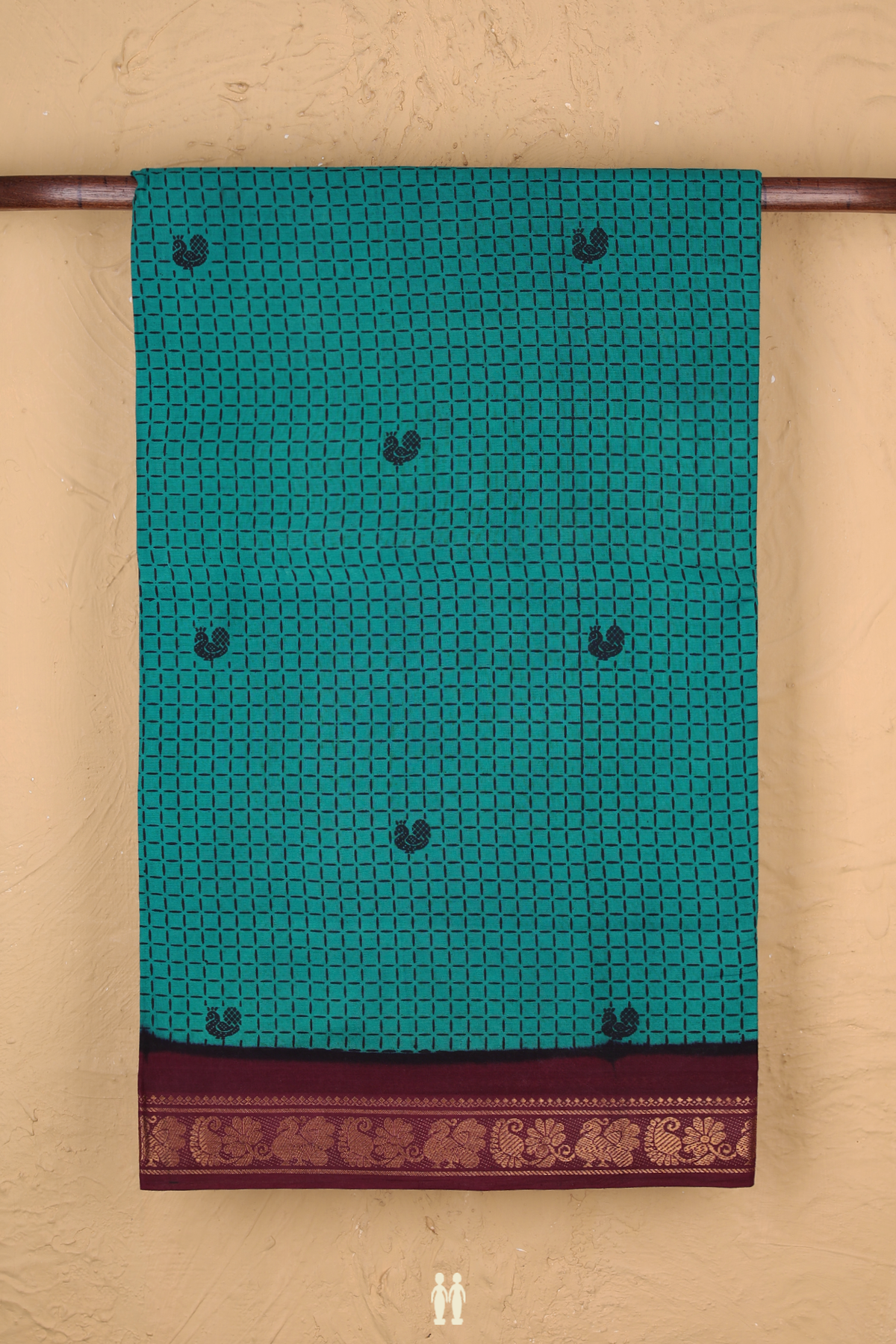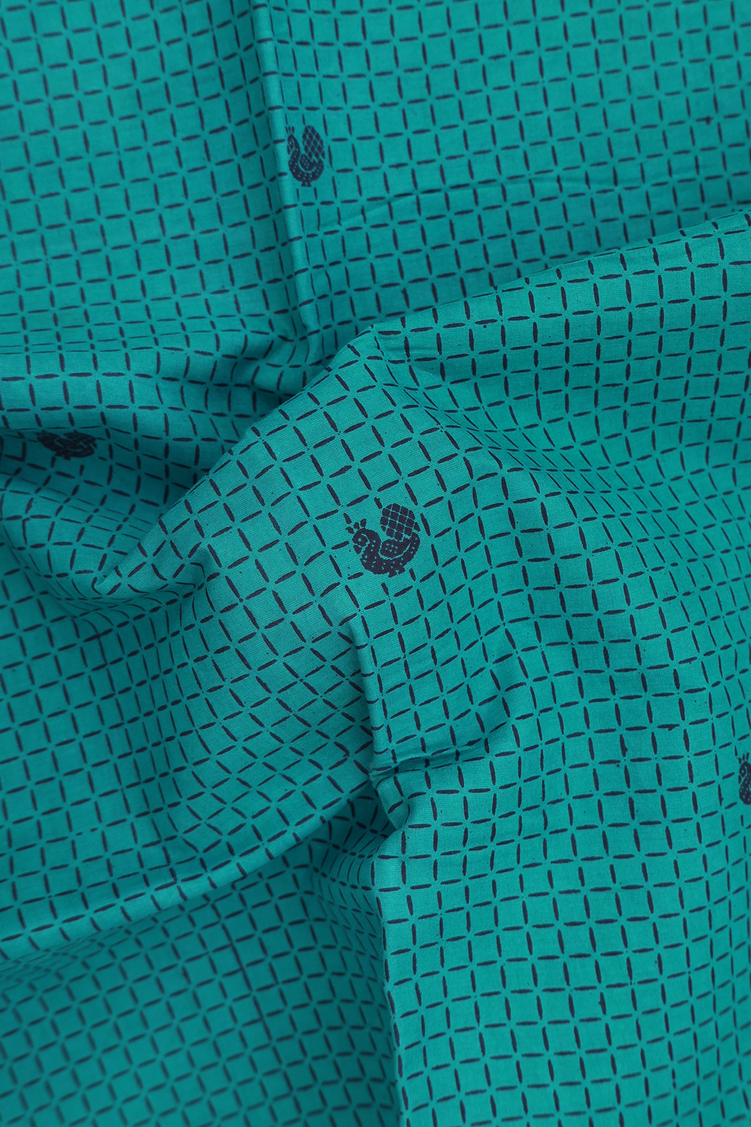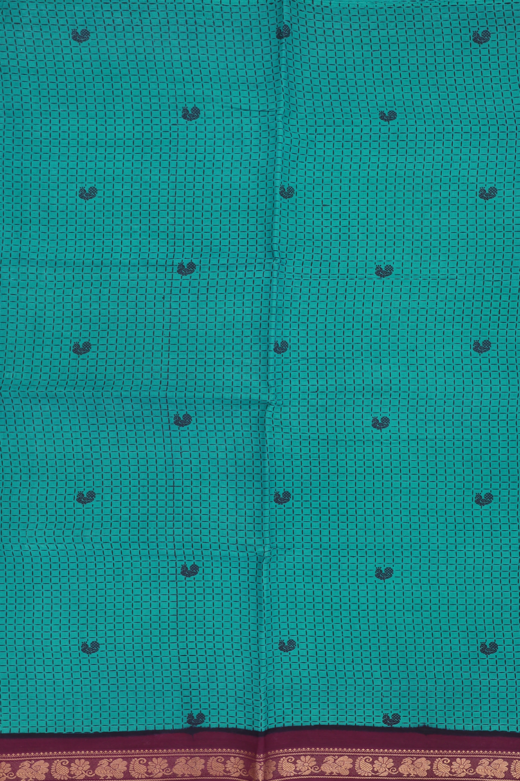 Sungudi Cotton Saree In Peacock Green With Printed Design