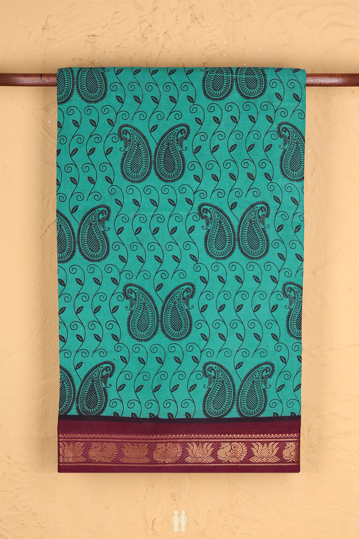 Sungudi Cotton Saree In Teal Green With Paisley Design