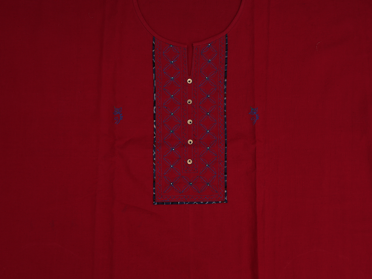 Elevate your ethnic wardrobe with this exquisite red cotton salwar material, adorned with intricate threadwork buttas that showcase traditional craftsmanship. The unstitched design offers complete creative freedom, allowing you to customize the fit and silhouette to your preferences. Crafted from breathable cotton, this fabric ensures comfort throughout the day while maintaining its elegant appearance. Perfect for creating a statement piece that blends timeless artistry with contemporary style, this salwar material is ideal for festive occasions, celebrations, or everyday sophistication.