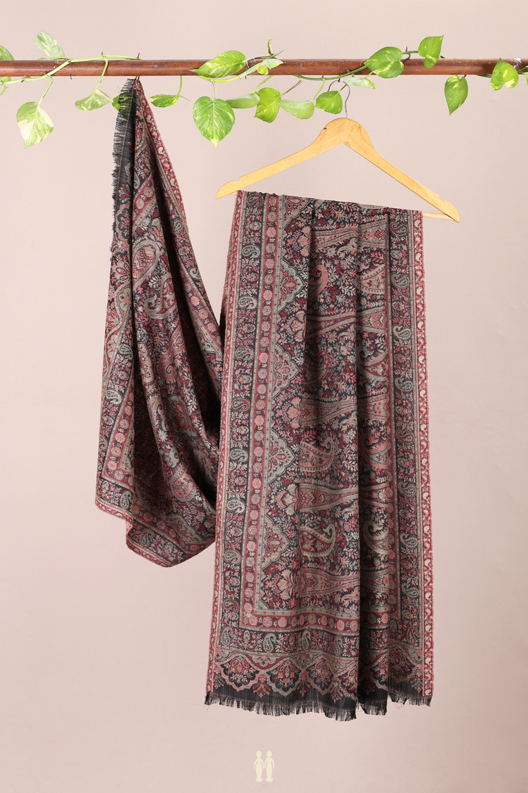 Elevate your ensemble with this black woolen cotton shawl featuring exquisite threadwork design. Crafted for warmth and sophistication, its fine blend offers softness and durability. Perfect for layering, it adds a refined touch to both casual and formal attire while keeping you comfortably wrapped in elegance.
